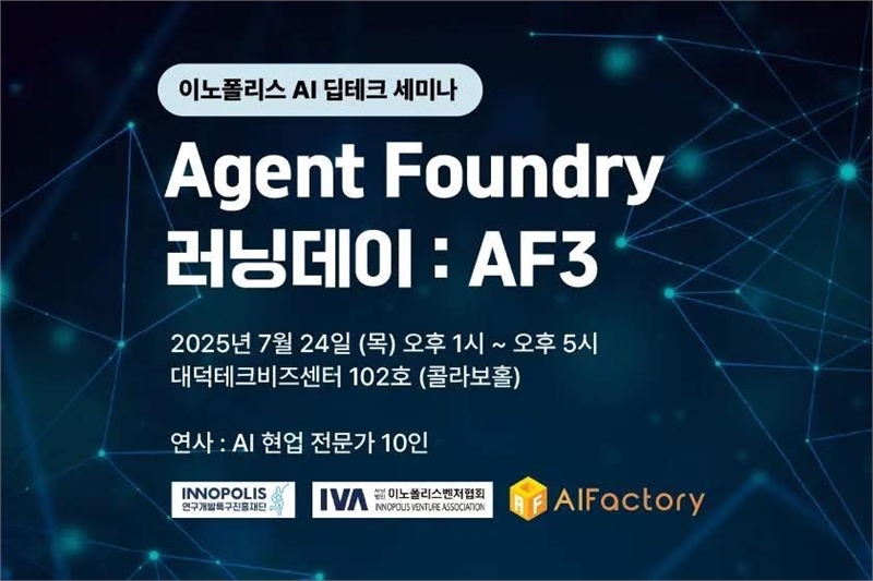 AIFlow·AIFrenz·AIFactory 등 대덕특구 3개 AI 커뮤니티는 오는 7월 24일(목) 대전 유성구 대덕테크비즈센터 라보홀에서 'AF3 세미나'를 공동 개최한다고 22일 밝혔다.