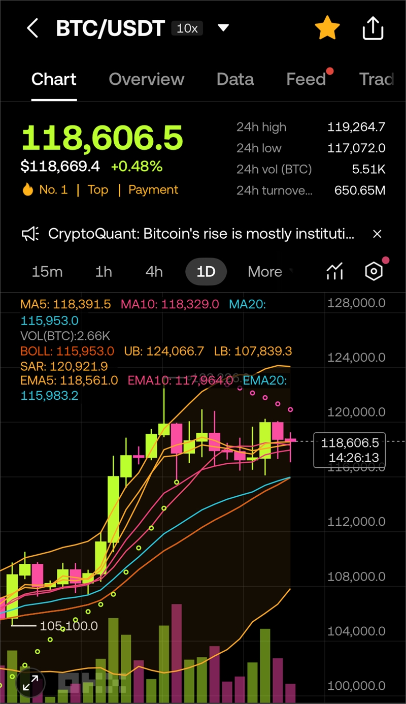 비트코인의 현재 기술적 상황은 여전히 강세를 나타내고 있다. ADX 지표가 29를 기록하며 강한 추세의 지속성을 보여주고 있다.