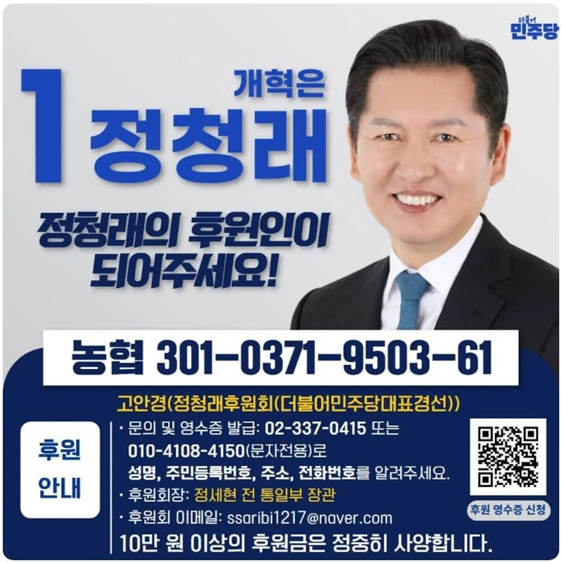 정청래 후보는 일반 후원금 3억 원과 전당대회 후원금 1억 5천만 원이 빠르게 마감되었다고 밝혔다. 그는 “후원금을 요청하는 일이 쑥스럽고 미안하다”며 지지자들에게 진솔한 감사의 마음을 전했다.
